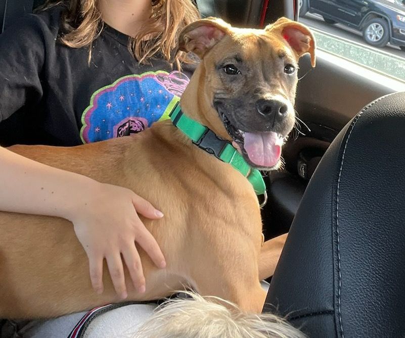 Marcella, our sweet Staffordshire Terrier mix, has found her forever home! πΎ