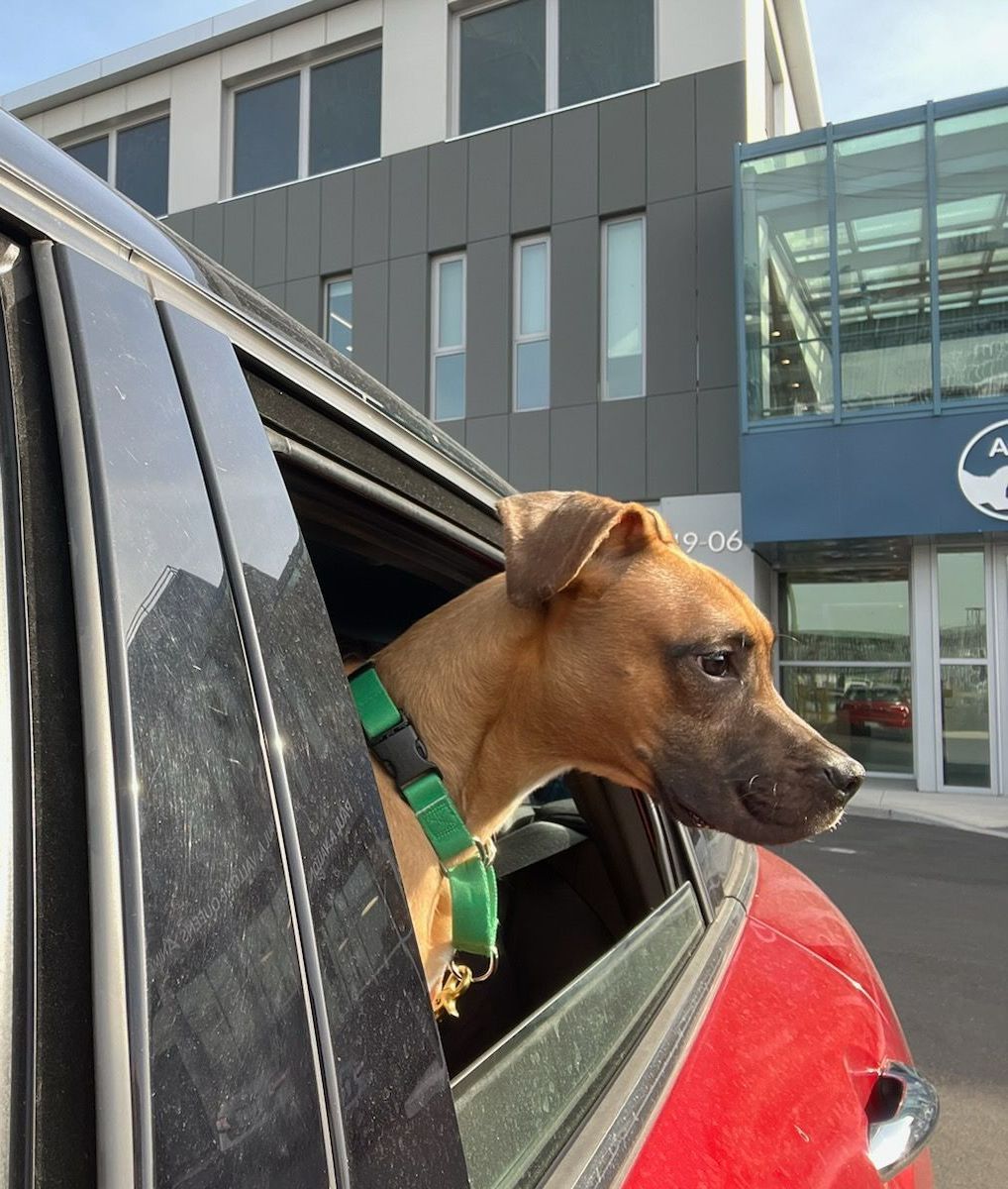 This handsome, loyal boy, who loves car rides, chicken nuggets, belly rubs, and playing ball, is now thriving in a place where he can receive all the care, attention, and love he deserves.