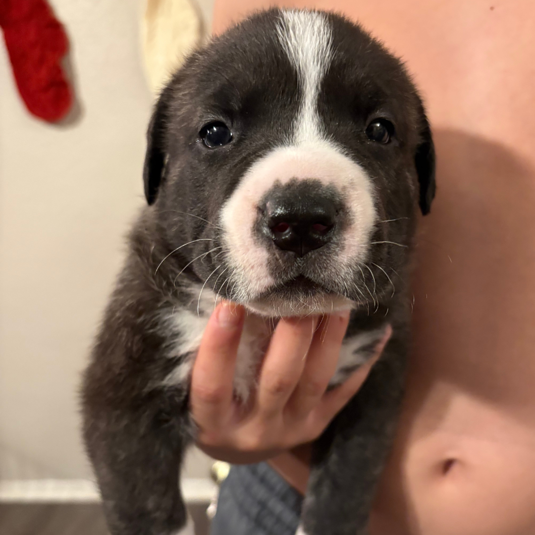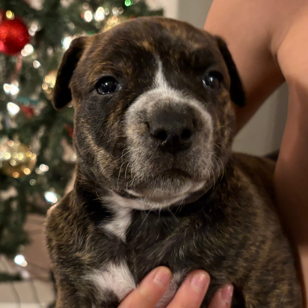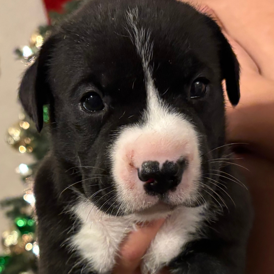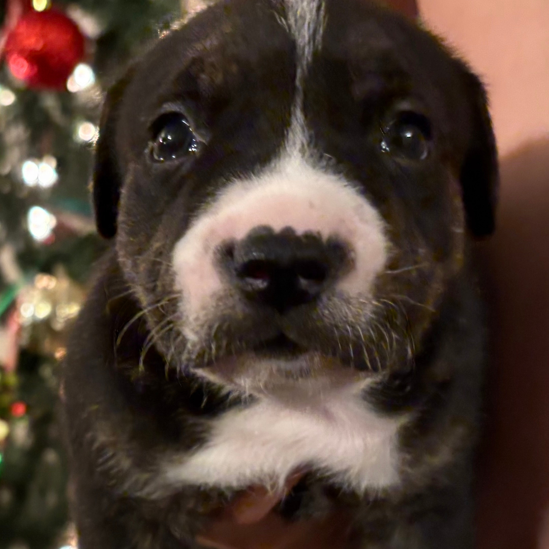 Athena is part of Mama Eleni’s miracle litter, born under our care after her mom was rescued from BARC Shelter in Texas. She’s healthy and looking for a loving home.