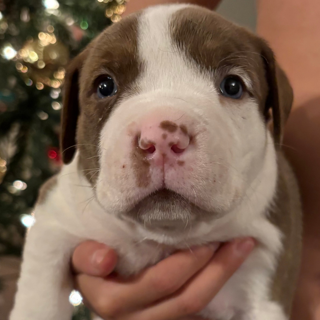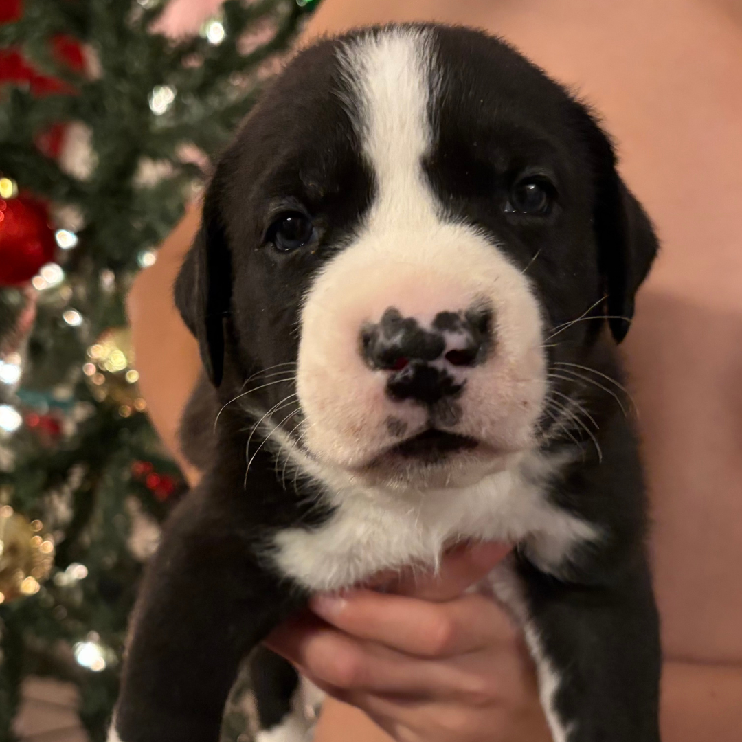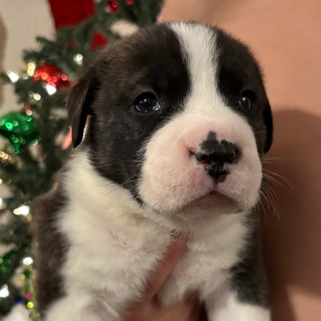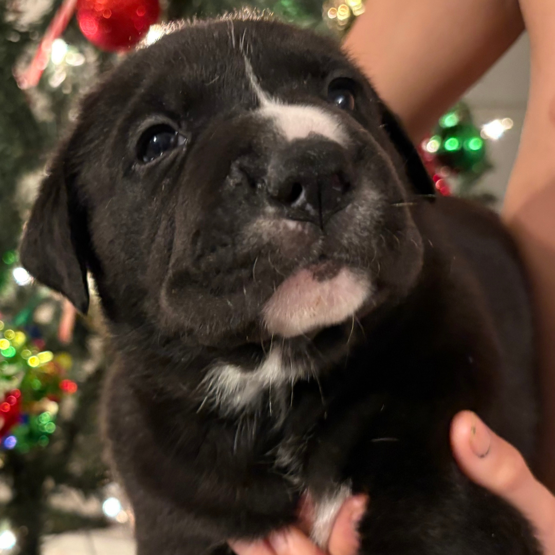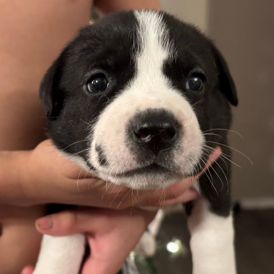 Athena is part of Mama Eleni’s miracle litter, born under our care after her mom was rescued from BARC Shelter in Texas. She’s healthy and looking for a loving home.