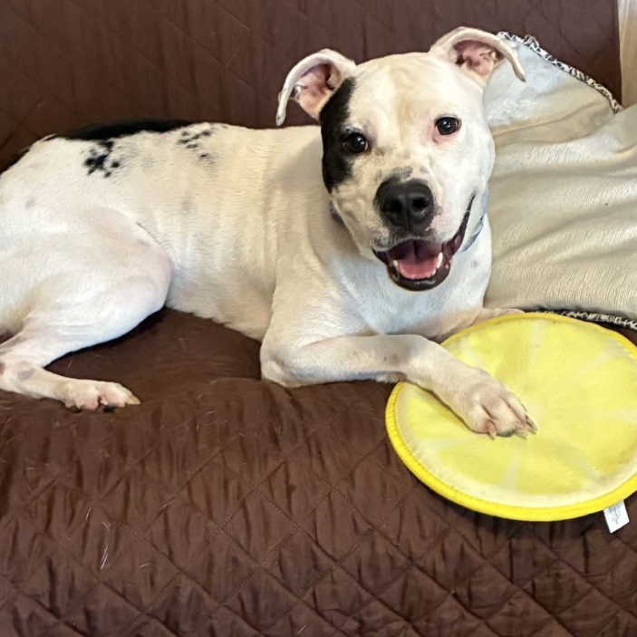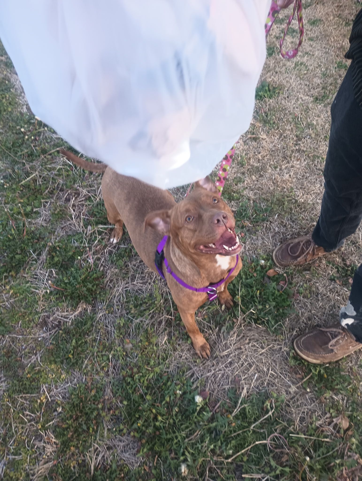 Luna is a gentle Pitbull, fully vaccinated and soon-to-be spayed. This sweet girl came to us as an owner surrender and is learning the ropes of life both inside and outside the home.