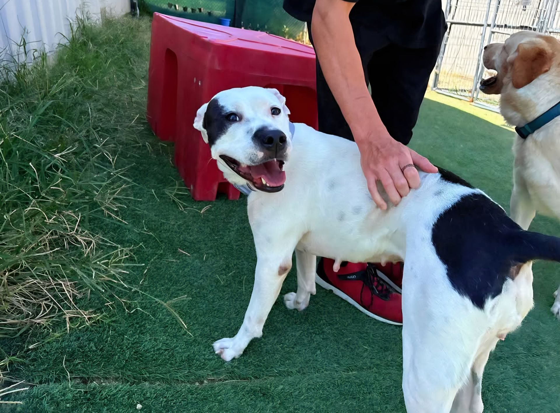 Herschel, affectionately known as Buck, was rescued hours before euthanasia from Barc Shelter in Texas. He appears to have sustained a gunshot wound to his front leg, and his foster family is helping him get the care he needs. Buck is estimated to be 1 year old, though he may be a little older, and he will be neutered soon.